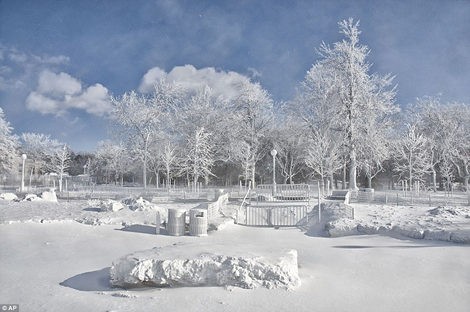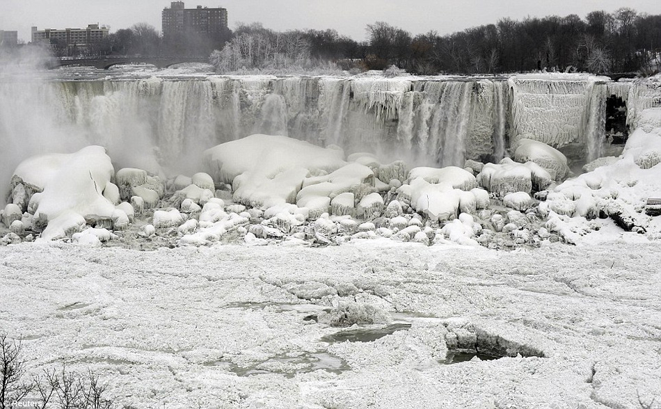 അമേരിക്കയിലും കാനഡയിലും ശൈത്യം പടര്ന്നുകയറിയപ്പോള് നയാഗ്രയിലെ വെള്ളച്ചാട്ടവും നിലച്ചു. നയാഗ്ര മാത്രമല്ല അമേരിക്കയിലെ എല്ലാ വെള്ളച്ചാട്ടങ്ങളും പഴയ കഥയിലെ മന്ത്രവാദിയുടെ ശാപം പോലെ ഐസ്കട്ടകളായി വായുവില് നിശ്ചലമായി. ചില ശൈത്യദൃശ്യങ്ങള്